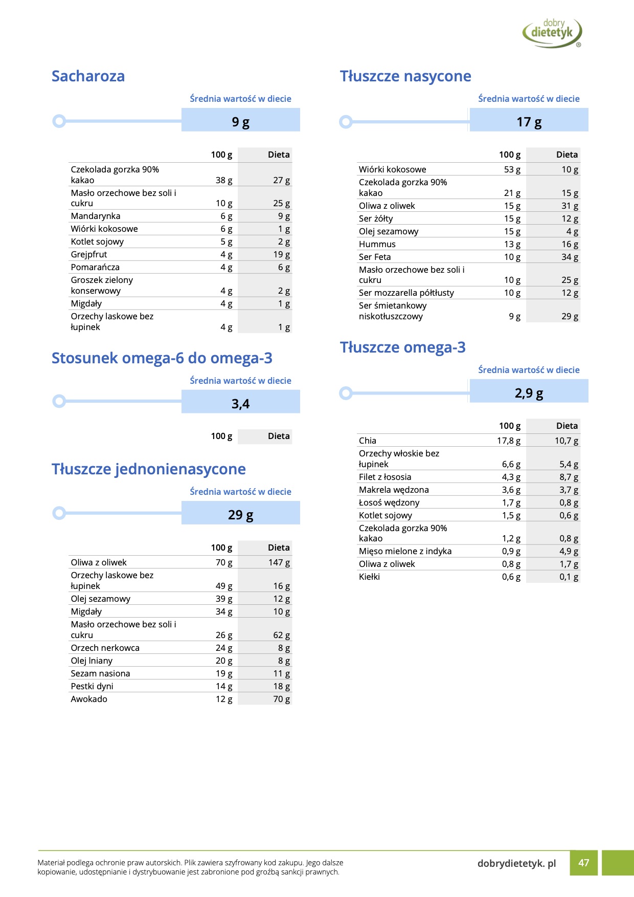 Dodatkowo do opracowanego planu dietetycznego otrzymasz atrakcyjnie przygotowane ciekawostki i wiadomości żywieniowe, które mam nadzieję pozwolą Ci zrozumieć wiele spraw związanych z nurtującym Cię problemem, a także przyczynią się do zwiększenia ogólnej wiedzy żywieniowej.